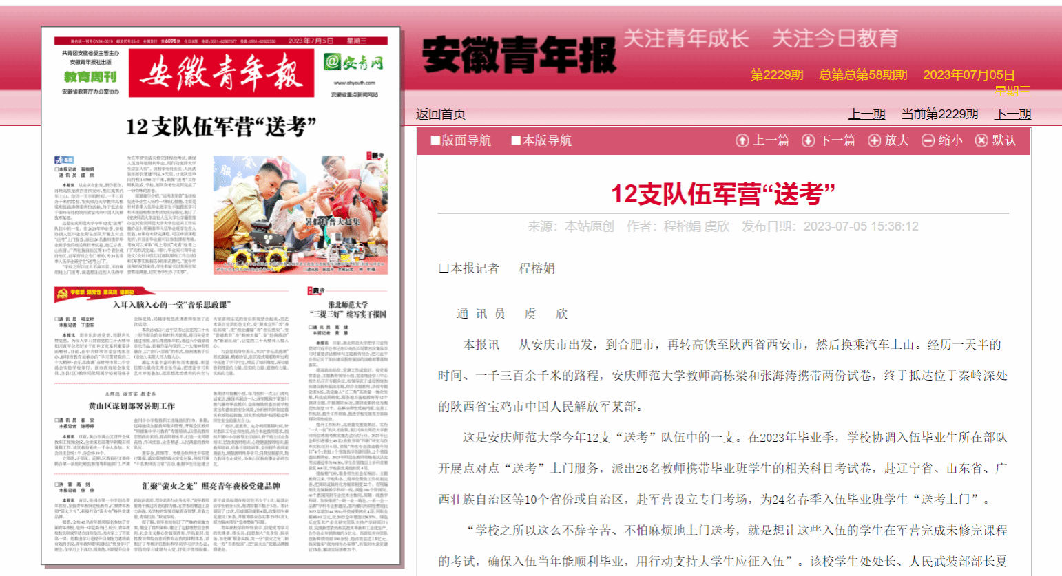 “学校之所以这么不辞辛苦、不怕麻烦地上门送考,就是想让这些入伍的学生在军营完成未修完课程的考试,确保入伍当年能顺利毕业,用行动支持大学生应征入伍”。该校学生处处长、人民武装部部长夏建华说,8天里,12支队伍单向行程1.0788万千米,确保“送考”工作顺利完成,学校、部队和考生共同完成了一份特殊的答卷。