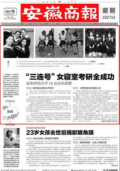 皖江晚报:安庆师大现三连号“学霸寝室” 12朵金花全部考研成功