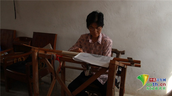 图为实践团成员们拜访省级非遗传承人吴桂伢,吴桂伢向成员们演示挑花。中国青年网通讯员 牛玉洁 摄