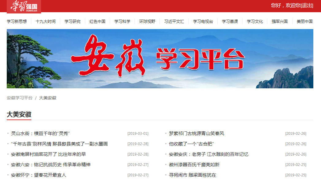 学习强国平台:https://ah.xuexi.cn/local/detail.html?ae5e411fe91d6d3c1ac4def110933f4f=219ac6c4db08d3e197727202eafe7975&6e9d852f0075def5a5b44097c3ebecda=ff6a12e50e78313684e799182f06bea715143a797f1d357bbde0c9d428549f33