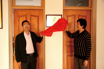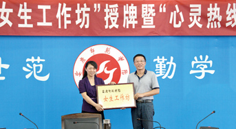 2014年4月,该校设立“女生工作坊”推进女大学生心理健康教育工作。图为授牌仪式