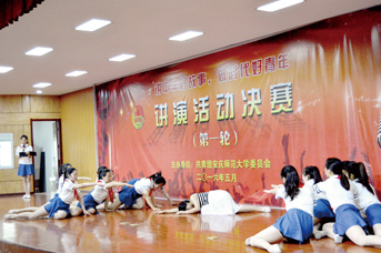 在该校学生看来,“讲故事”可不是小学生们的游戏,而是一场竞争激烈的比赛。“同学们不仅要‘能说会道’,更要通过讲演的故事传递一种精神、一种积极向上的正能量,培育和践行社会主体核心价值观”。该校文学院汉语言文学专业学生赵琳蓉是第一届“讲故事”比赛一等奖、最佳讲演奖的获得者,她告诉记者,最初看到通知时她很诧异,大学生怎么也玩起了小孩子的游戏,由于学校要求全员参与,她按照通知要求,找了一些近现代的中华民族的传统故事,仔细阅读后,她体会到了学校的良苦用心。