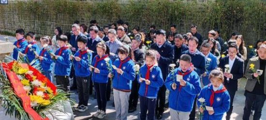 “去时少年身,归兮英雄魂。英烈功勋彪炳史册,烈士精神烛照未来,这盛世如您所愿。”在场的参加活动者齐声朗诵缅怀词,并向“延乔读书处”纪念碑敬献鲜花。