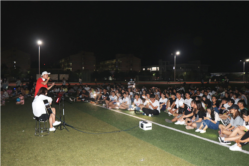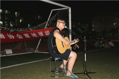 (凤凰网,9月18日)一把吉他,一个简易的话筒,众人围坐成一圈,将手电筒作为点点星光,伴随着晚风,在草地上享受一场轻松自在的小型“演唱会”。9月15日,beat365平台唯一官网大学生吉他爱好者协会举办了本学期第一次的草地音乐弹唱节,当晚近百名大学生齐聚在操场上,一同享受音乐与晚风交织的夜晚。