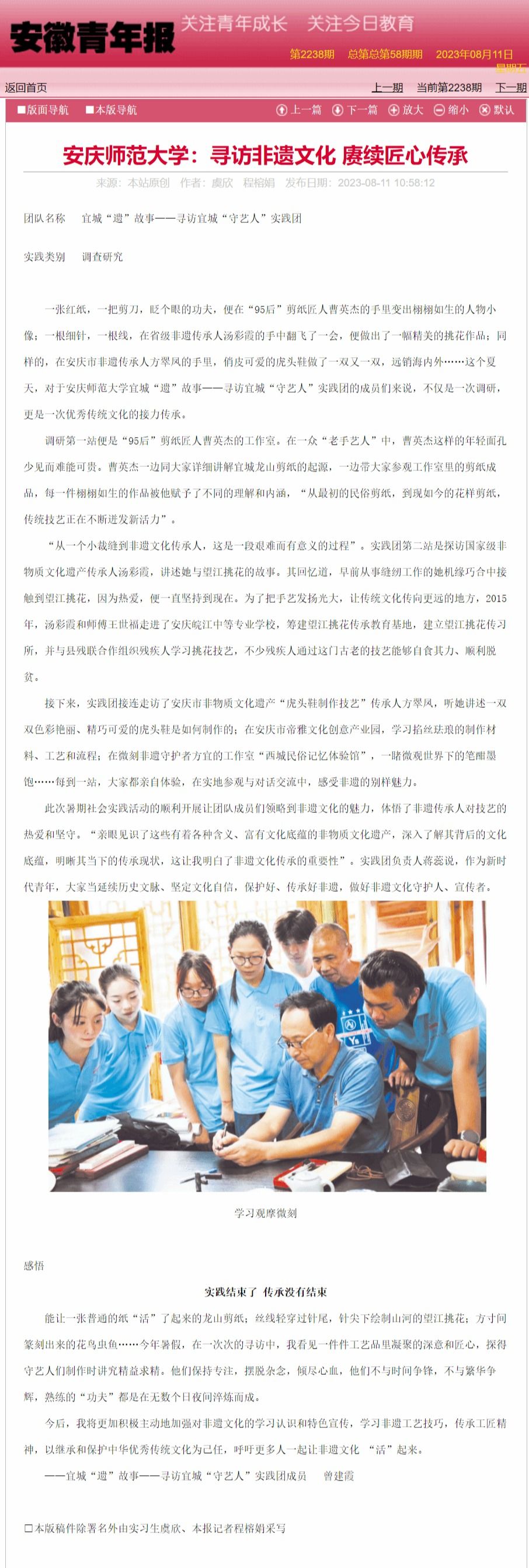 来源:【安徽青年报】http://epaper.ahyouth.com/paperdetails.php?CurrPeid=2254&CurrSid=21566&newsid=62294