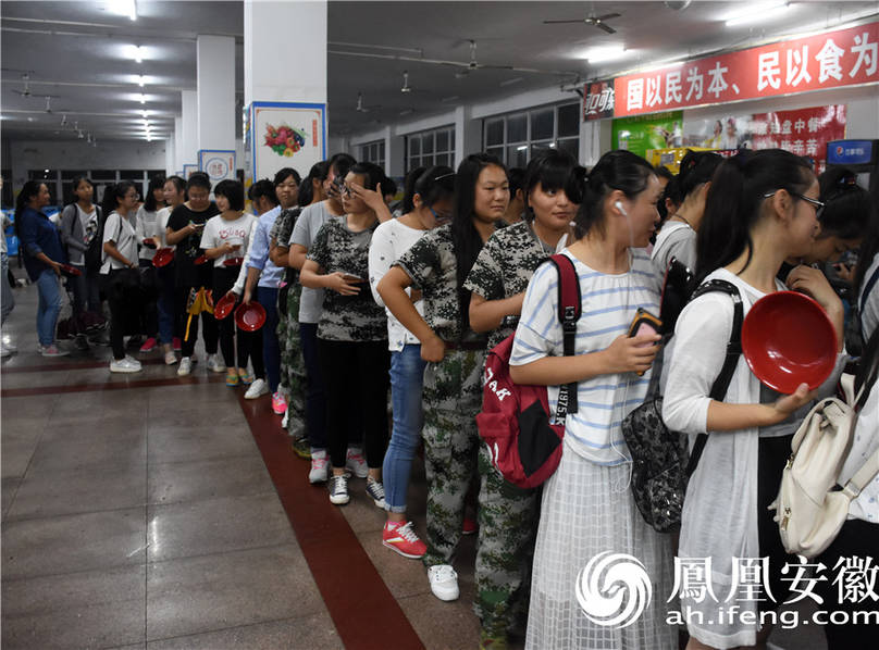 一新生排队终于盛到了一份自己亲手包的饺子,棒棒哒。(摄影/学生记者 黄振君)
