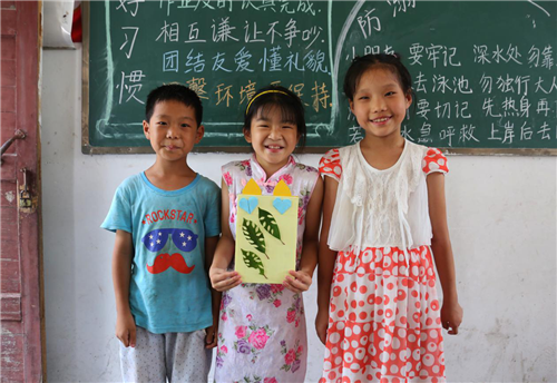 作为课堂上的“小老师”,志愿者夏雪是第一次参加支教活动,为了更好地教学生们进行手工制作,她特地在网上搜集了一些图片,她说:“跟孩子们一起进行手工制作的过程富有乐趣,并且这些树叶都是从地上拾取的,而不是直接在树上采摘,很环保。”