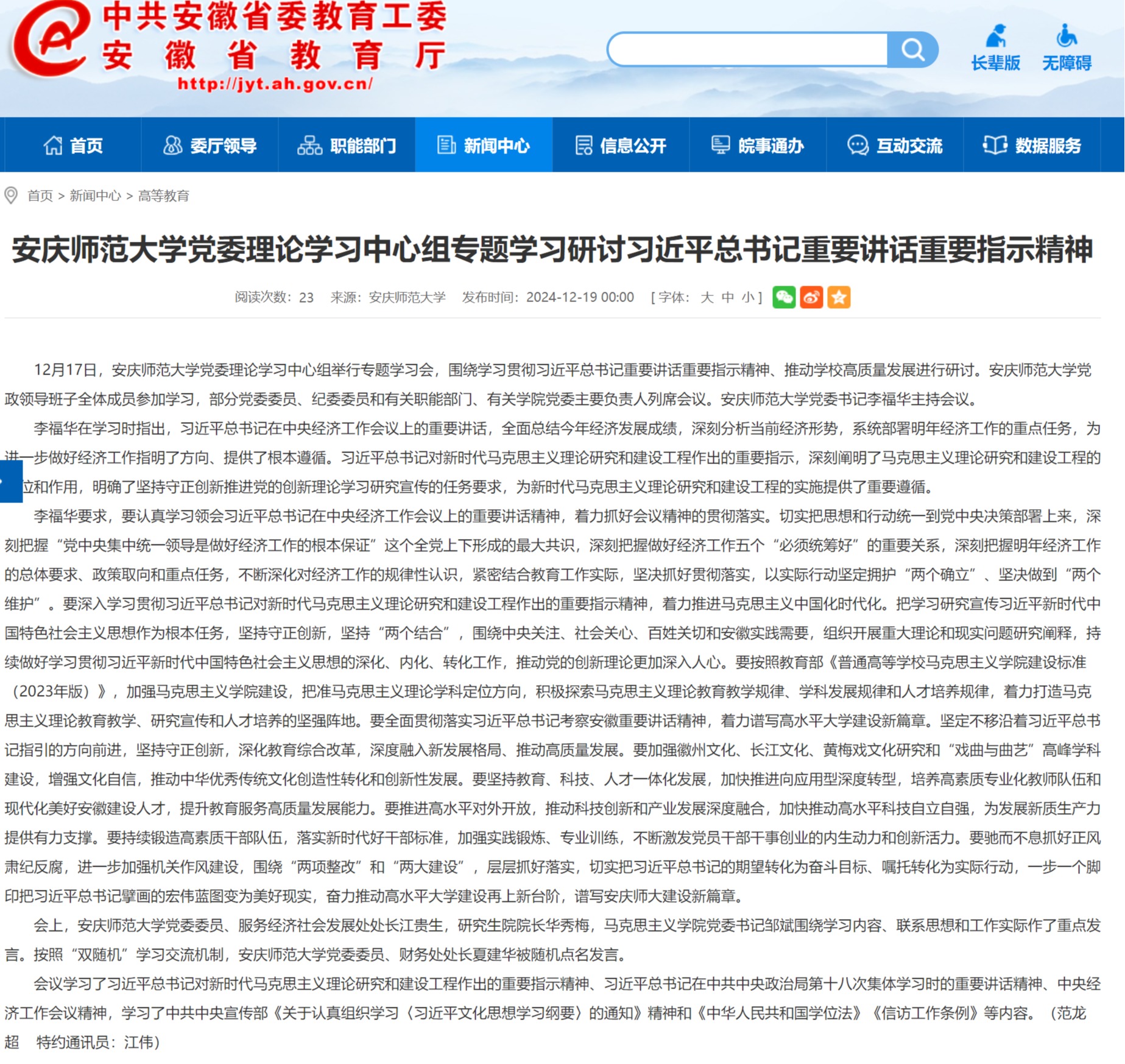 上一篇:安徽教育网:学习贯彻习近平总书记考察安徽重要讲话精神“社科名家大巡讲”走进beat365平台唯一官网