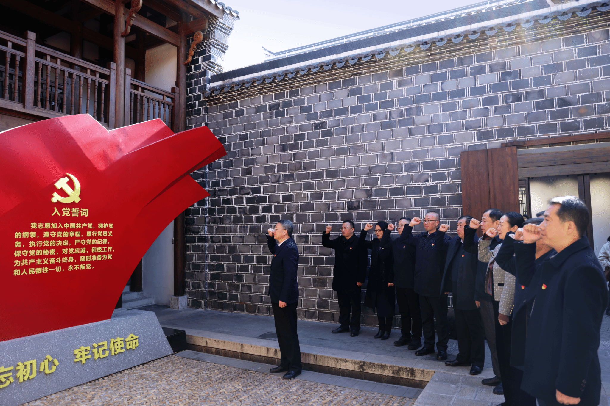 校党委常委全体成员在桐城市六尺巷廉洁文化陈列馆重温入党誓词