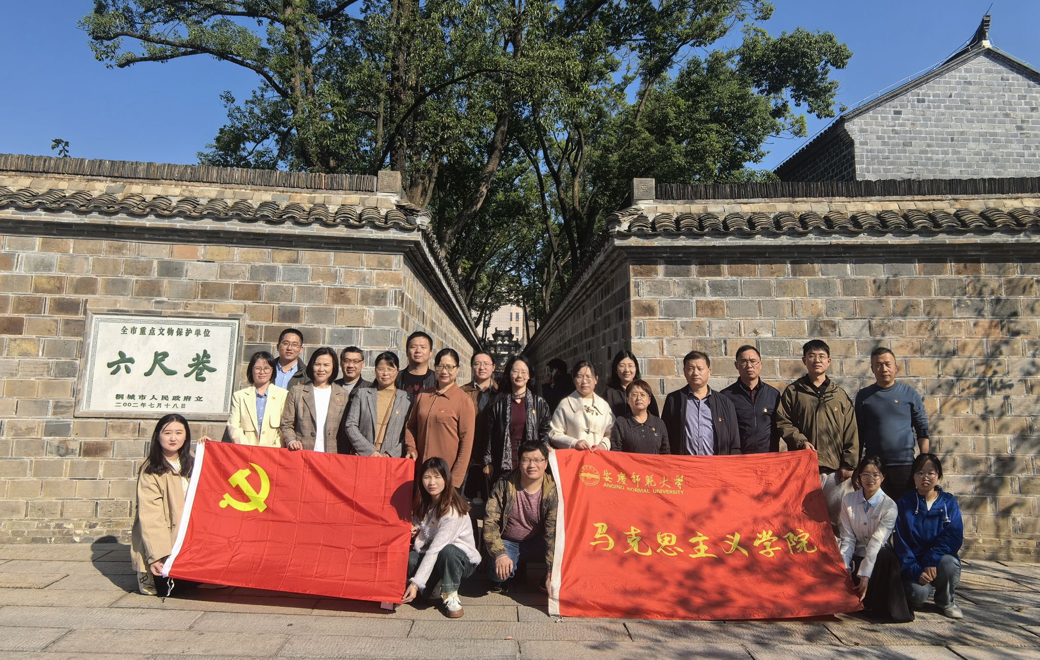 10月24日,马克思主义学院党委理论学习中心组(扩大)赴桐城市六尺巷开展现场学习,深入学习贯彻习近平总书记在安徽考察时的重要讲话精神。马克思主义学院班子成员、党支部书记、教研室主任、师生党员代表参加学习。
